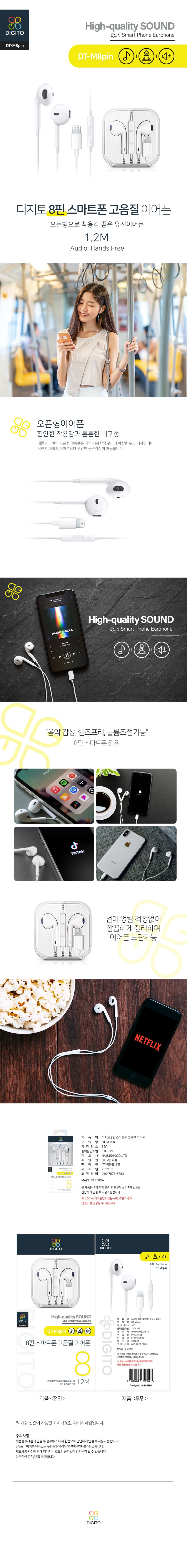디지토 DTM8PIN 오픈형 유선 이어폰 8핀